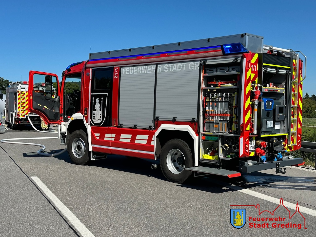 Zu einem brennenden Fahrzeug wird die Feuerwehr Greding am Freitagmittag auf die A9 alarmiert. Zwischen den Anschlussstellen Greding und Hilpoltstein steht ein KFZ auf dem Standstreifen in Vollbrand. Ein Trupp unter Atemschutz kann das Feuer rasch ablöschen. Während der Löscharbeiten muss die Autobahn in Fahrtrichtung Nürnberg komplett gesperrt werden. Nach rund zweieinhalb Stunden kann der Einsatz für die 20 Feuerwehrleute beendet werden.