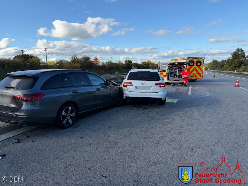 Auf der A9 in Fahrtrichtung Nürnberg kommt es am Samstagnachmittag zu mehreren Verkehrsunfällen. Auf Grund dessen wird eine umfangreiche Alarmierung von Polizei, Rettungsdienst und Feuerwehr in die Wege geleitet. Am Ende sind fünf Fahrzeuge beteiligt. Insgesamt werden zwei Personen verletzt.
