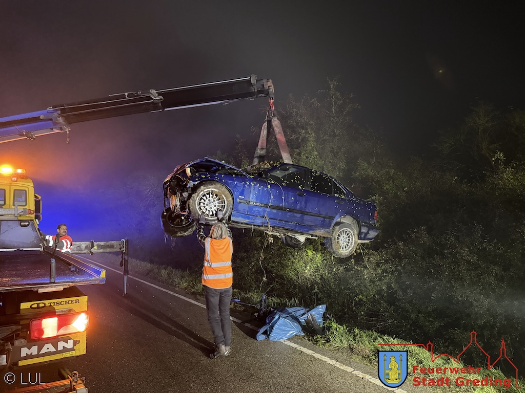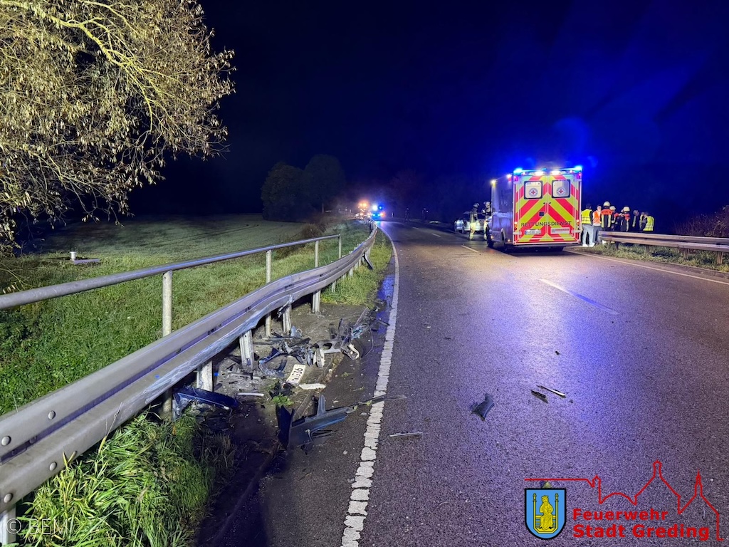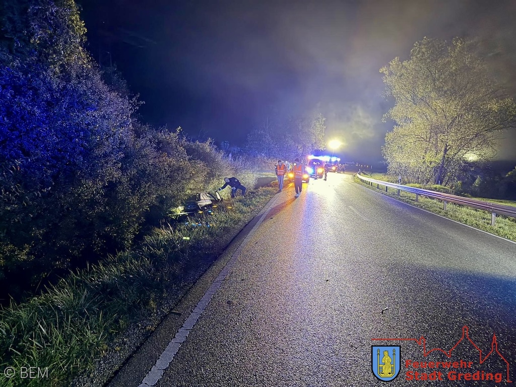 Auf der ST2227 zwischen Greding und Hausen kommt es zum Verkehrsunfall mit einem PKW. Nachdem das Fahrzeug gegen eine Leitplanke fährt, kommt es nach rechts von der Fahrbahn ab und landet ca. zwei Meter tief im Straßengraben. Der Fahrer wird noch vor Ort vom Rettungsdienst gesichtet, ein Transport in ein Krankenhaus ist aber nicht notwendig.